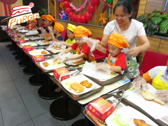 小朋友們紛紛來親自動(dòng)手制作美味漢堡