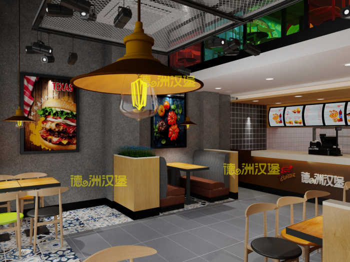 熱烈祝賀廣西玉林市北流鎮(zhèn)二環(huán)北路桃源德洲漢堡餐廳效果圖出