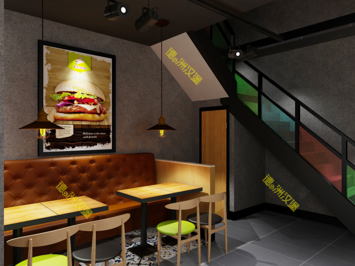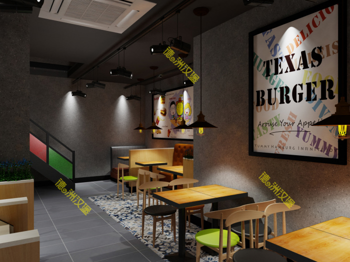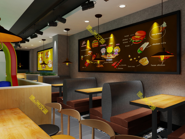 熱烈祝賀河南省新鄉(xiāng)市輝縣市輝城港灣匯金港德洲漢堡餐廳效果圖出爐