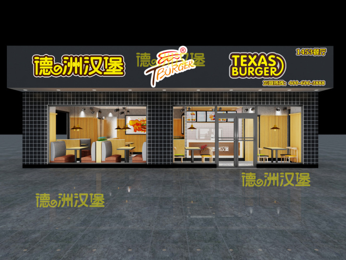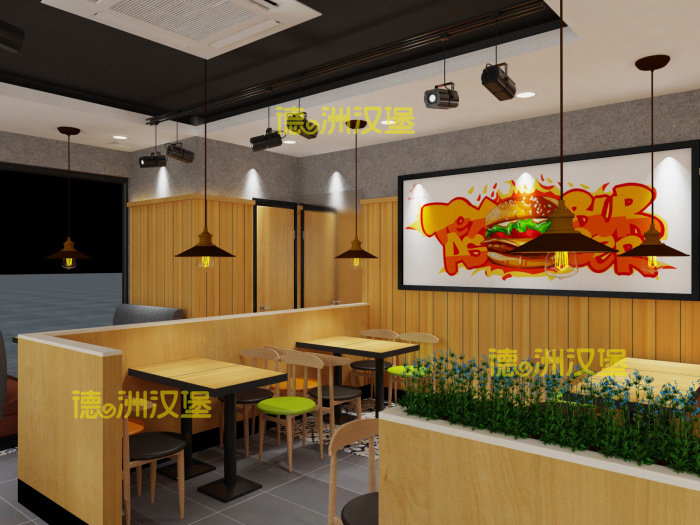 熱烈祝賀廣東省河源市連平縣發(fā)到家購物中心德洲漢堡餐廳效果圖出爐