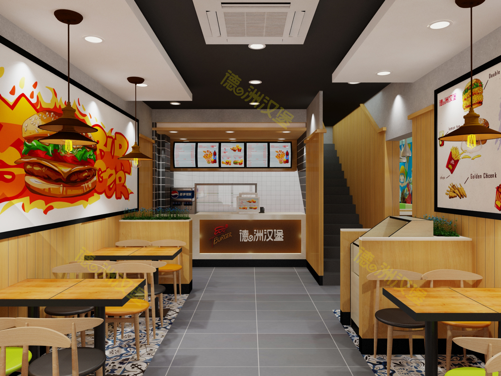 廣西玉林市奧園廣場德洲漢堡擴(kuò)大店面裝修中