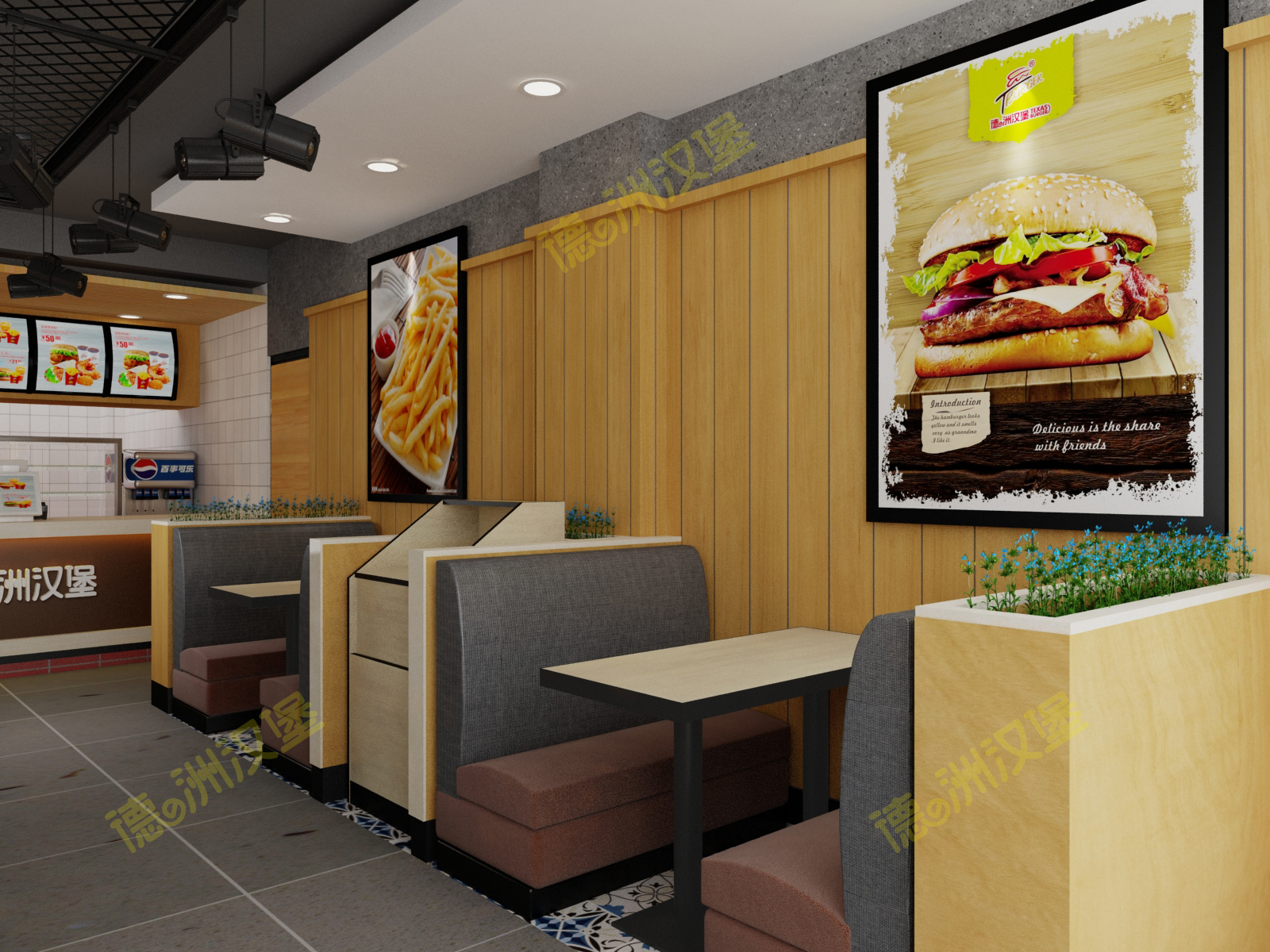 熱烈祝賀河源市紫金縣九和鎮(zhèn)益佳購物廣場德洲漢堡餐廳效果圖出爐
